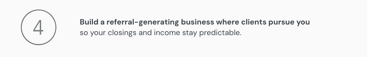 Your income feels predictable month after month — because your pipeline is built on relationships that don't dry up when the market shifts