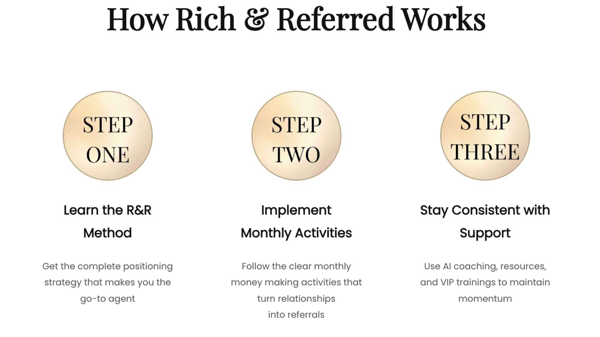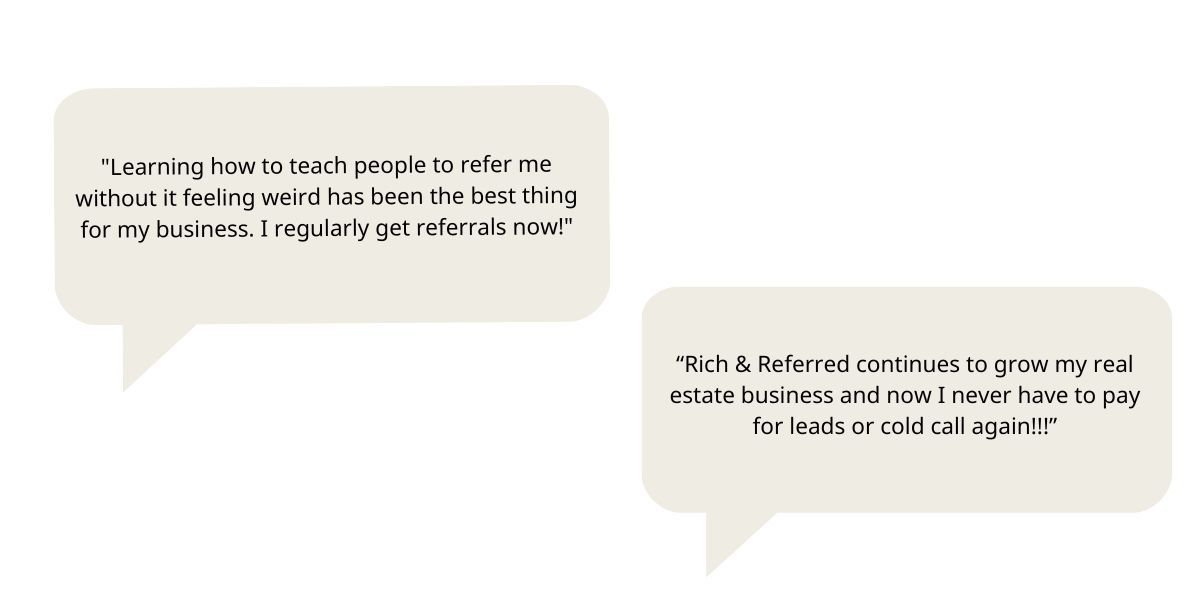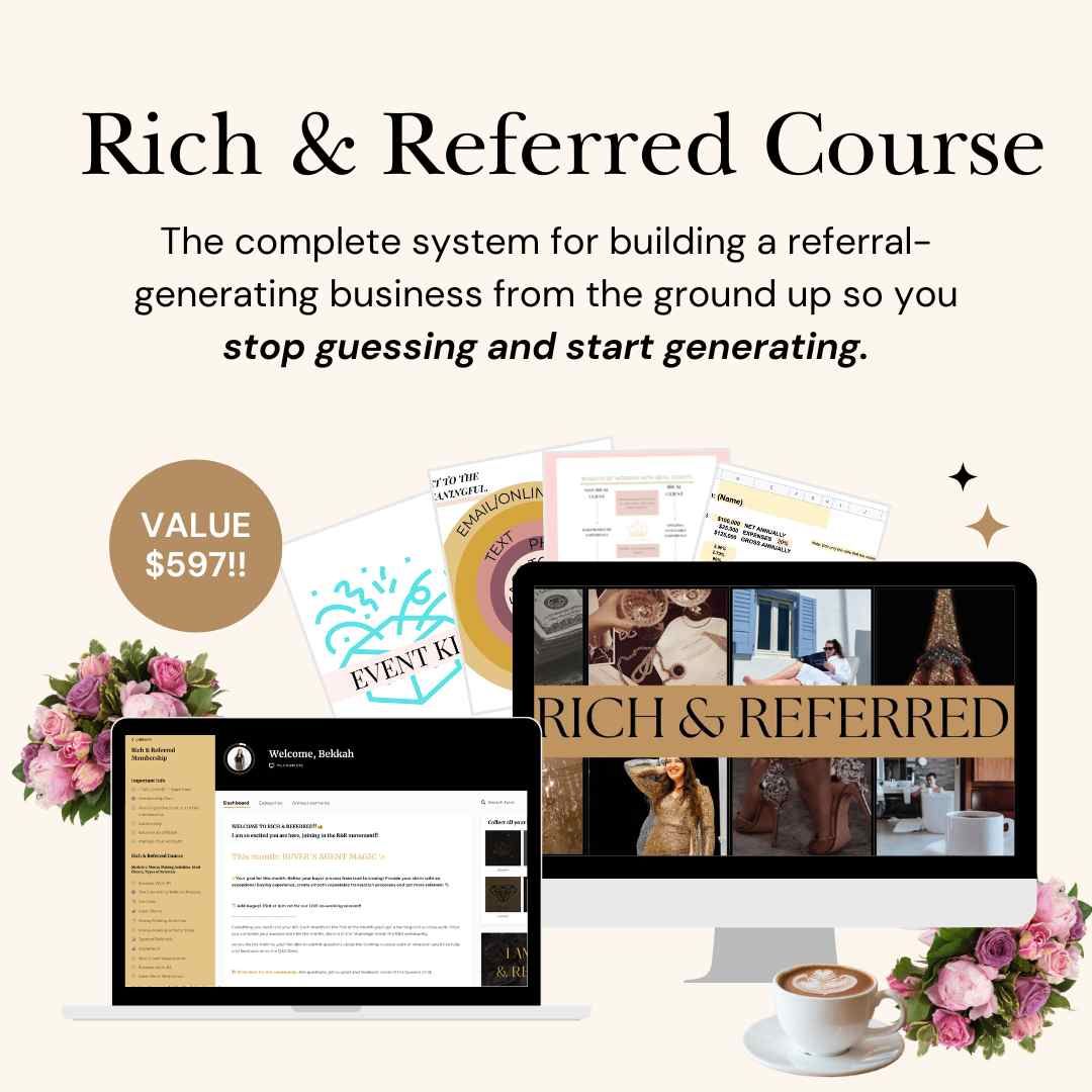 The Rich & Referred Membership helps you generate referrals consistently even without a perfect database, a large social media following, or years of experience.